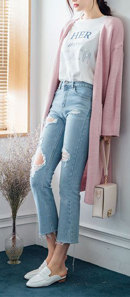 หญิงสาวู่ใุเสื้อยืดีากำลังดีัที่ถูกัใลงไปใาเีที่ขาดช่วงเ่าและ้าเล็กน้อย เผยให้เ็เีขาาเนียนเ ำใ้เดูเซ็กซี่ึ้เล็กน้อย พร้อมัมีเืุ้ไพรมีูอ่อน ๆ คลุม่าบางั้าอีกที ัีี่่าบางั้เ็เ็ก้าวเ้าที่สวมด้วยรองเ้าโลฟเฟอร์ีาให้ไึ้ พร้อมัขยับื้างที่ืกระเป๋าู่ึ้าโบกัา