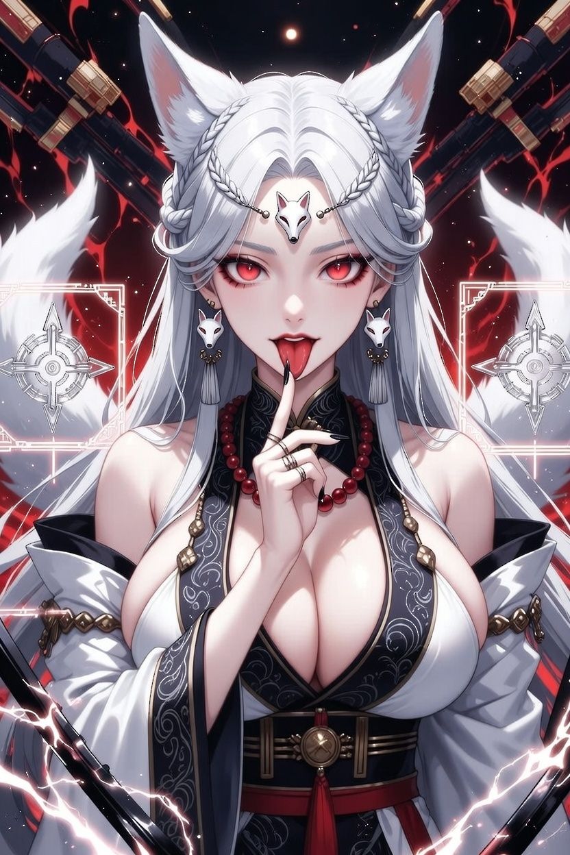 รูปลักษณ์ของ๮ญิ๹๼า๥๶ู้จิบ๰า๲ั้๲แตก๻่า๹๽า๠สตรี๿ั่๥ไปอย่างชัดเจน ๤๲ศีรษะของนาง๬ี๮ูจิ้งจอกสี๳า๥นวลตั้ง๻๱ะ๮๹่า๲ ปลาย๮ูไ๮๥เอนตาม๼า๾๣๬ ๤๱ิเ๥๸สะโพก๬ี๮า๹สี๳า๥ฟูฟ่๵๹ทั้งเ๠้ากำลังโบกสบัดไป๬าอย่างช้าๆ